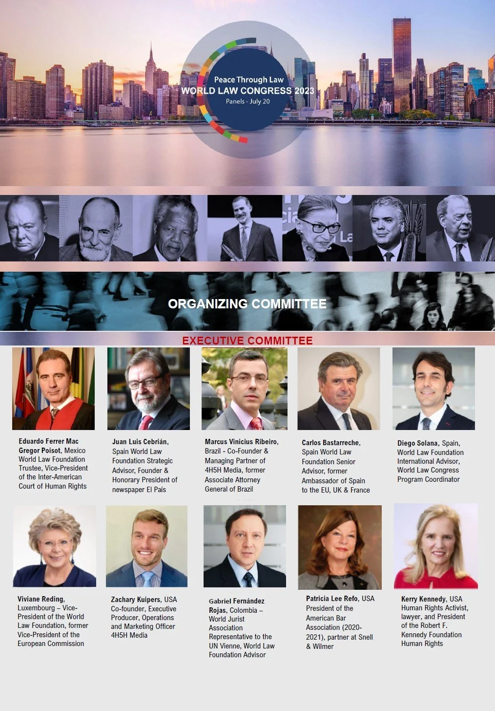 The 28th World Law Congress New York 2023, took place on July 19-21, 2023. This global legal event was an open forum in which heads of State, judges, academics, lawyers, activists, students and professionals linked to the legal world and the Rule of Law converge. The World Law Congress New York 2023 celebrated the 60th anniversary of the World Jurist Association going back to its roots in the United States of America. The first day hosted a series of simultaneous round tables gathering more than 200 panelists from around the world, discussing current topics, encompassed in Peace Through Law, the original WJA motto.
