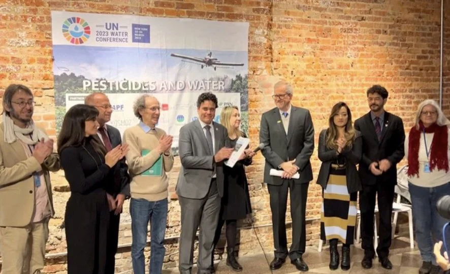 With the keynote speech from the Executive Secretary of the Ministry of Environment and Climate Change, Mr. João Paulo Ribeiro Capobianco, at the UN Water Conference official side event, influential researchers and institutions from around the world convened to address the critical issue of pesticides and their impact on water and public health. Their discussions centered on the creation of the International Pesticides Standards Alliance (IPSA). This global alliance aims to advocate for a new international regulatory framework for pesticides within the scope of the United Nations. IPSA’s primary objective is to prohibit the use of Highly Hazardous Pesticides (HHPs), substances proven harmful to both the environment and human health. By doing so, IPSA seeks to mitigate the devastating impact of these products on millions of people and living organisms worldwide.
